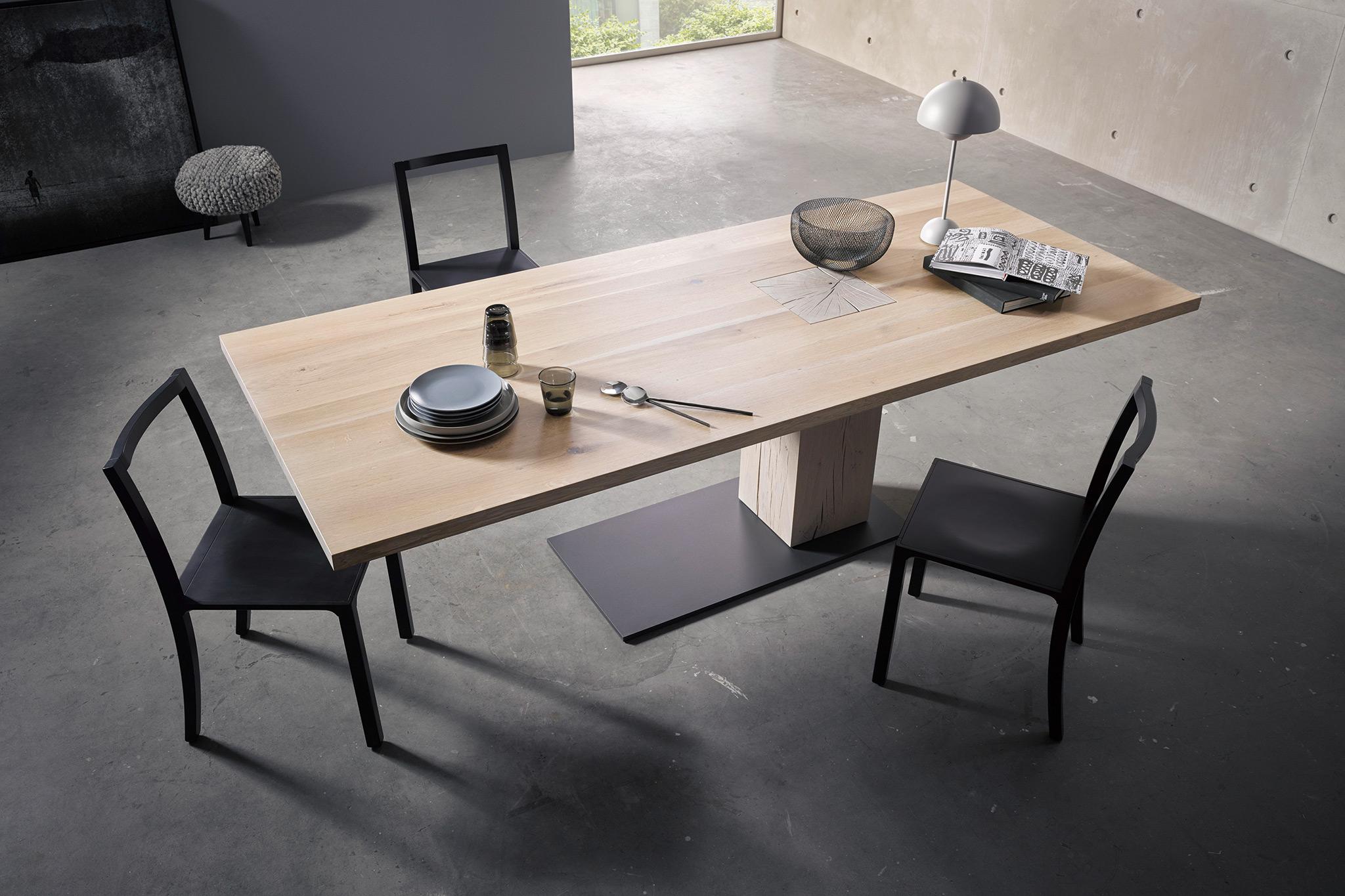 - Tischplatte Eiche massiv mit natürlichen Holzmerkmalen,