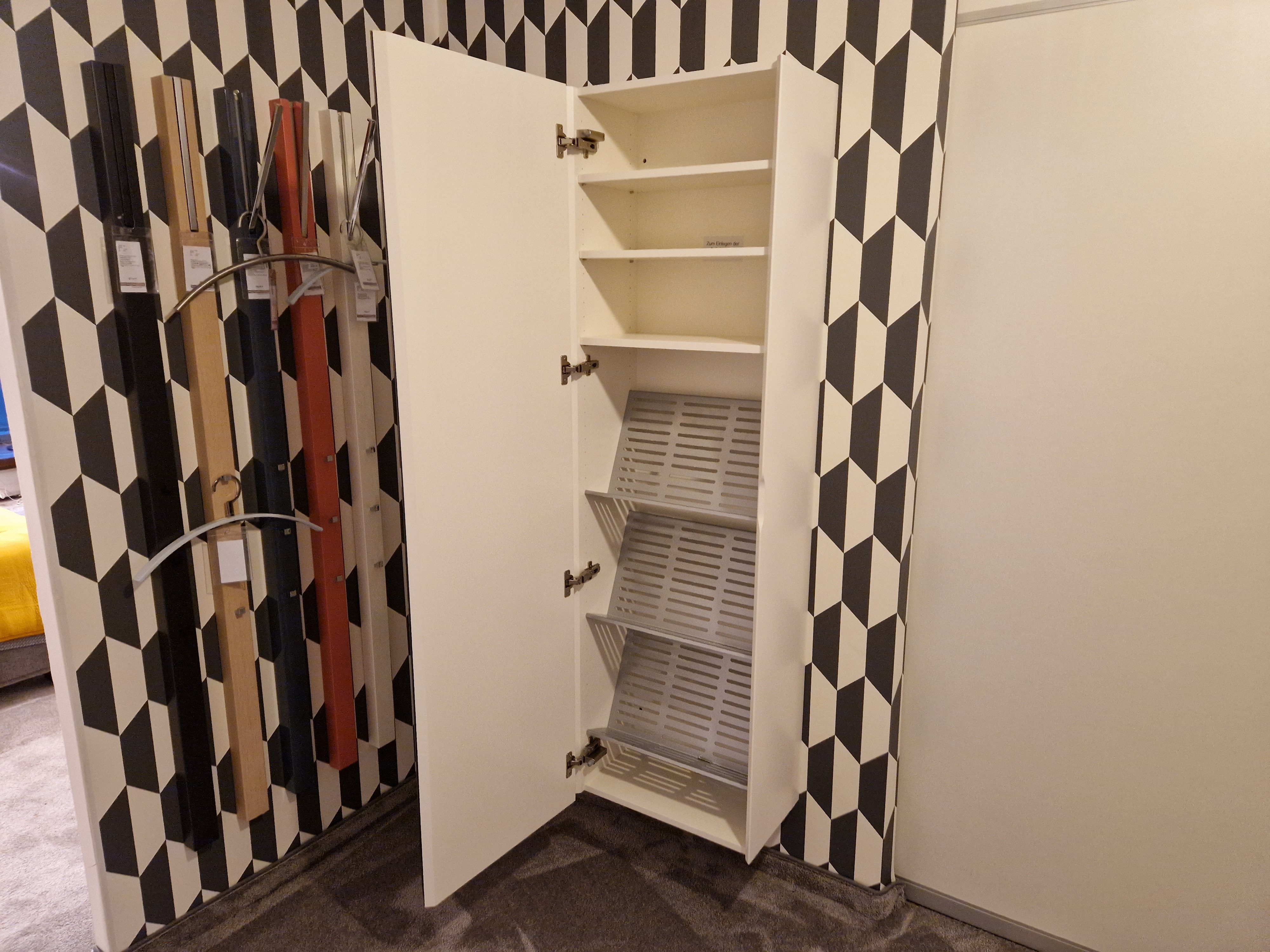 Inneneinteilung: 3 Fachböden und 3 Schuhböden (Lochblech pulverbeschichtet)
